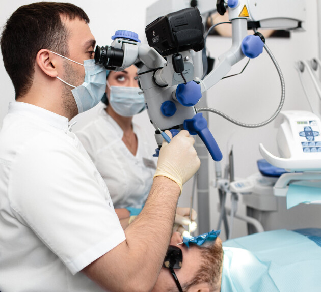 Лечение периодонтита одноканального зуба под микроскопом (2 посещения)