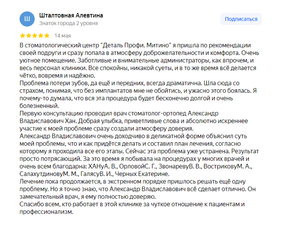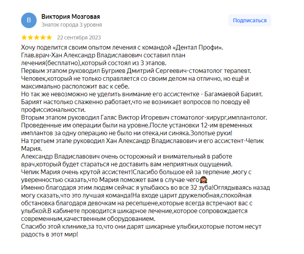 Главная ценность «Денталь Профи» — это команда профессионалов, которым доверяют и на чьи результаты равняются другие стоматологи.