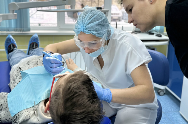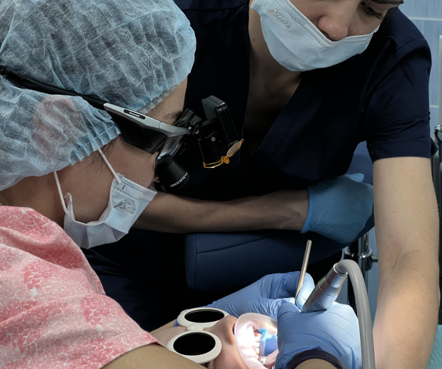 Детский стоматолог лечит под увеличением кариес любой сложности, а также пульпит (лечение каналов).